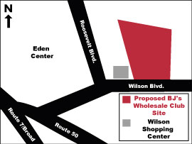 BJ’s Wholesale Club has submitted a site plan to build a new store on the 8.6 acre site of the old Noland Oil property at 6607 Wilson Boulevard in the City of Falls Church. The building will occupy 88,000 square feet and contain 366 parking spaces. The City of Falls Church approved the applicant’s site plan on April 20th. Planners from Falls Church met with Supervisor Gross to review the site plan and solicit feedback because the development is adjacent to the Seven Corners area of the Mason District in Fairfax County. The most recent project timeline lists a March 2010 opening date. The site is located on the old Noland Oil site at 6607 Wilson Blvd.